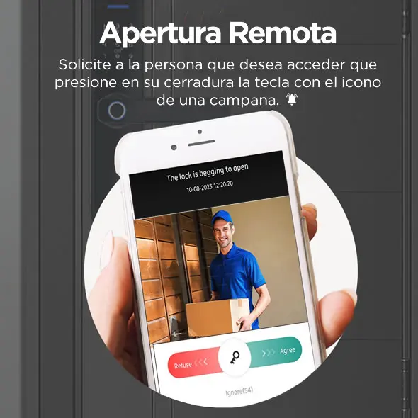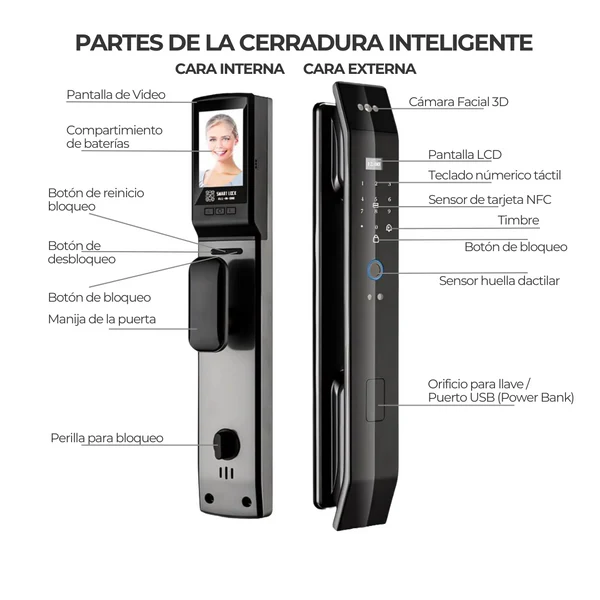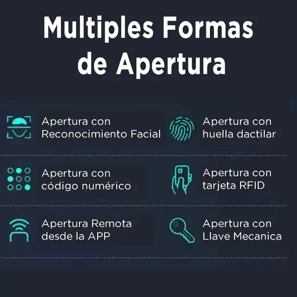 Accede con reconocimiento facial 3Dhuella dactilartarjeta NFCcódigo de accesollave física  app , Smart Life y Claves Temporales desde tu celular. ¡Siempre tendrás una opción segura para entrar!